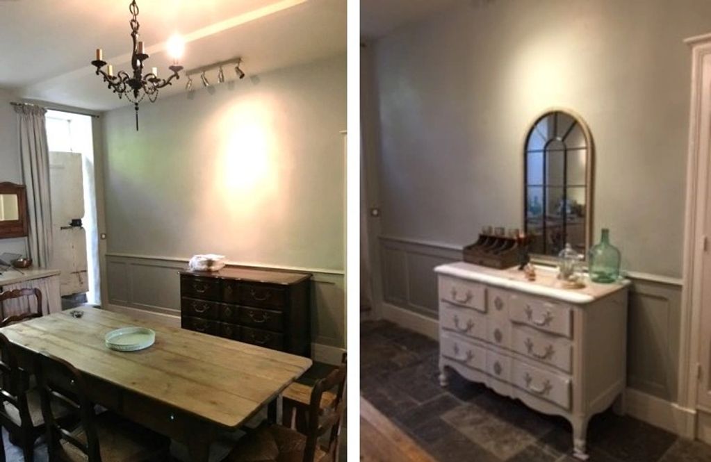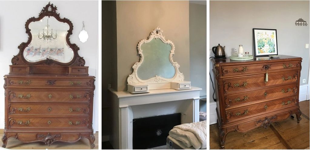 Most of the furniture has been purchased from brocante markets or second hand stores. I had to decide which pieces I wanted to paint. Some may think painting beautiful wooden vintage furniture is sacrilege however a lot of the pieces were not in pristine condition and some had obvious woodworm holes (the worms had long since departed!). Aesthetically, furniture made from different kinds of wood in the same room can look mismatched and out of place and too much wood makes the room dark and gloomy. Besides the French have been painting their furniture for centuries. I can always change my mind and remove the paint later! Here are before and after pictures of some of the furniture I have painted....